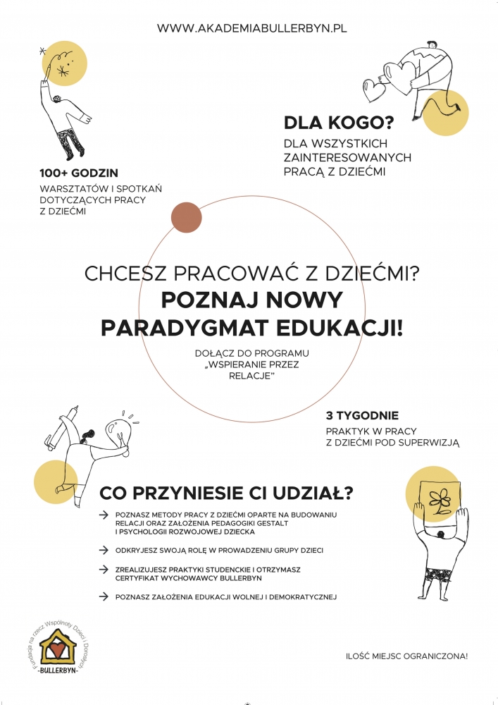 Fundacja Bullerbyn zaprasza studentów psychologii, pedagogiki i kierunków pokrewnych, którzy pracują lub chcą pracować z dziećmi i szukają wartościowego, praktycznego doświadczenia.