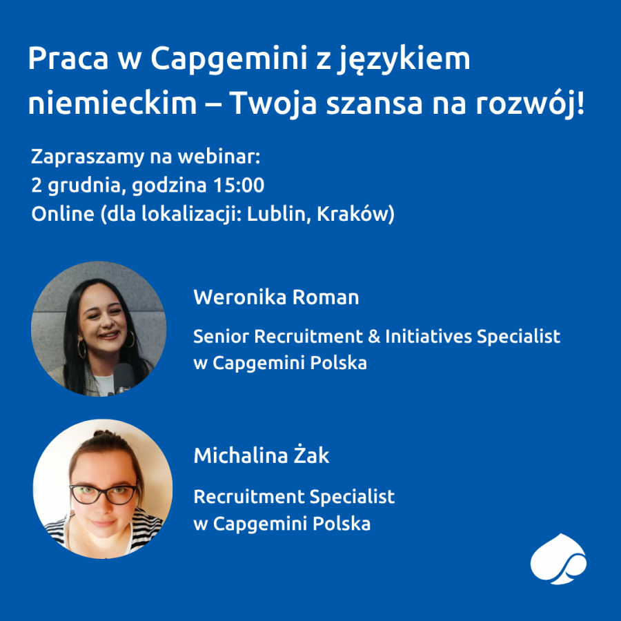 Zapraszamy na webinar, podczas którego dowiecie się, jakie możliwości rozwoju proponuje Capgemini dla osób, które posługują się językiem niemieckim.