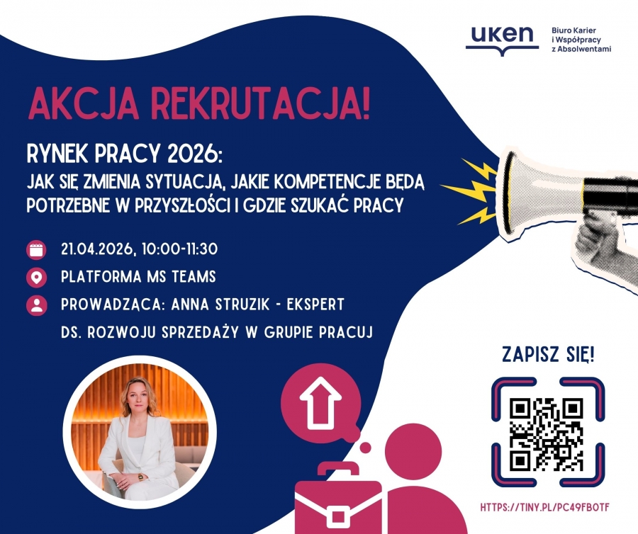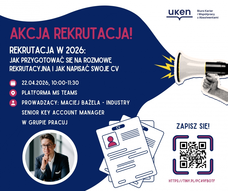 Biuro Karier zaprasza na cykl 3 praktycznych webinarów AKCJA REKRUTACJA, które pokażą, jak naprawdę wygląda proces rekrutacyjny od kuchni i jak skutecznie się do niego przygotować.